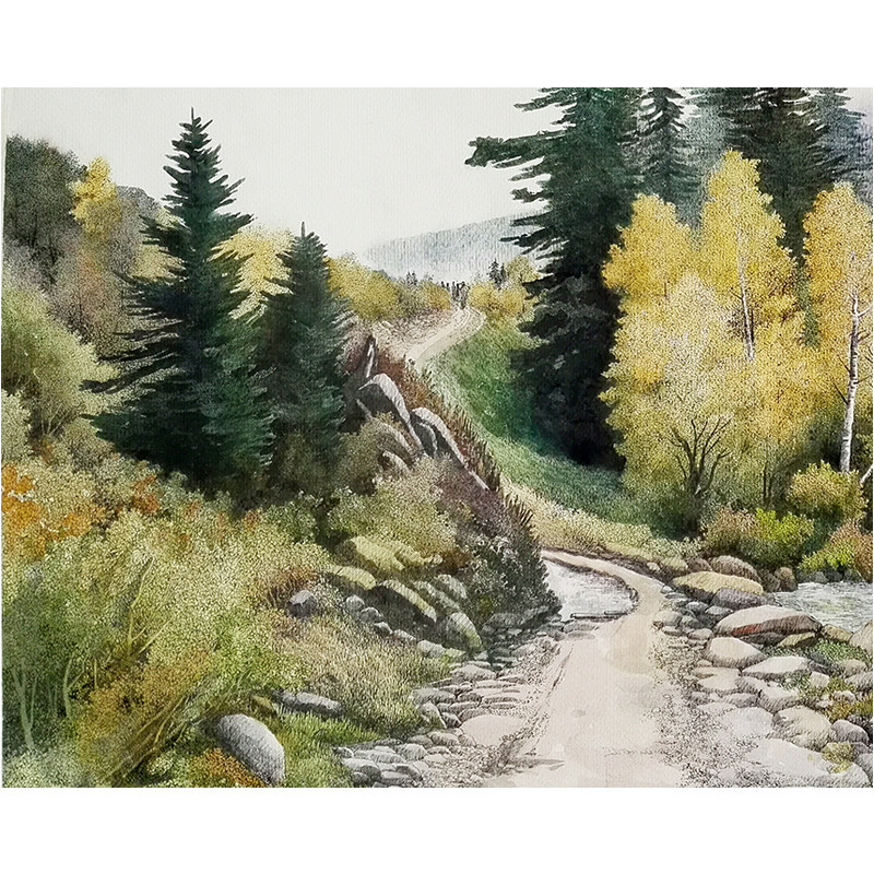 Fan Xianghou's "Country Road" new color pen drawing on paper with group photo