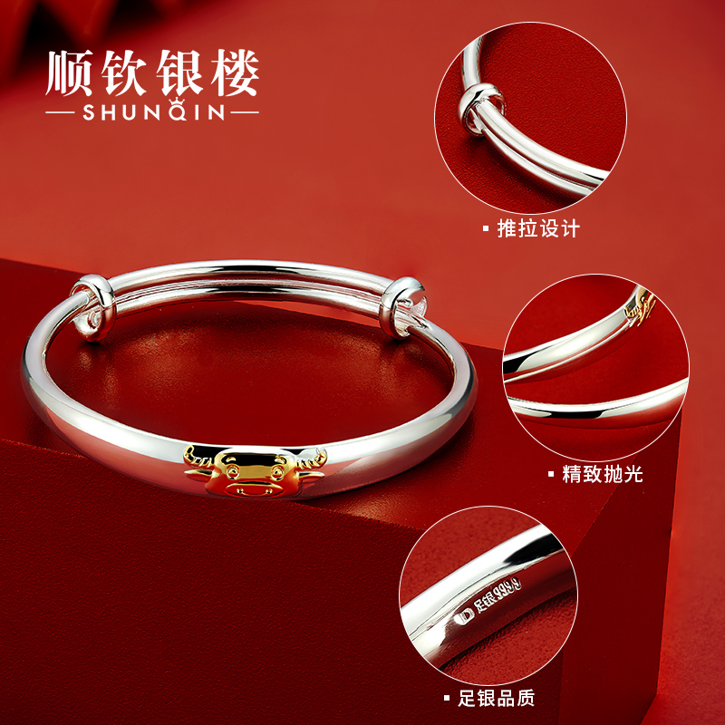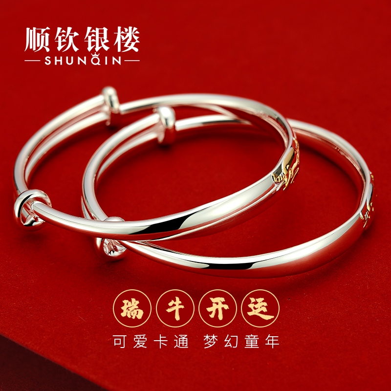 S9999 sterling silver baby bracelet Year of the Ox Rui Niu Fu Fu foot silver bracelet Baby children men and women full moon year-old gift