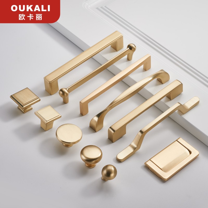 Modern minimalist gold light luxury cabinet drawer cabinet handle European kitchen shoe cabinet brushed gold wardrobe door handle