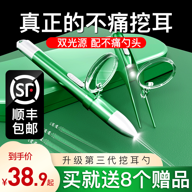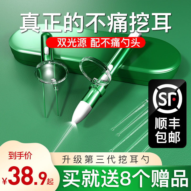 Baby luminous ear digging spoon Baby special children's ear digging artifact Safety children's ear digging soft headband light ear shit