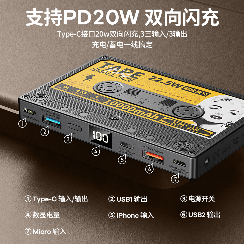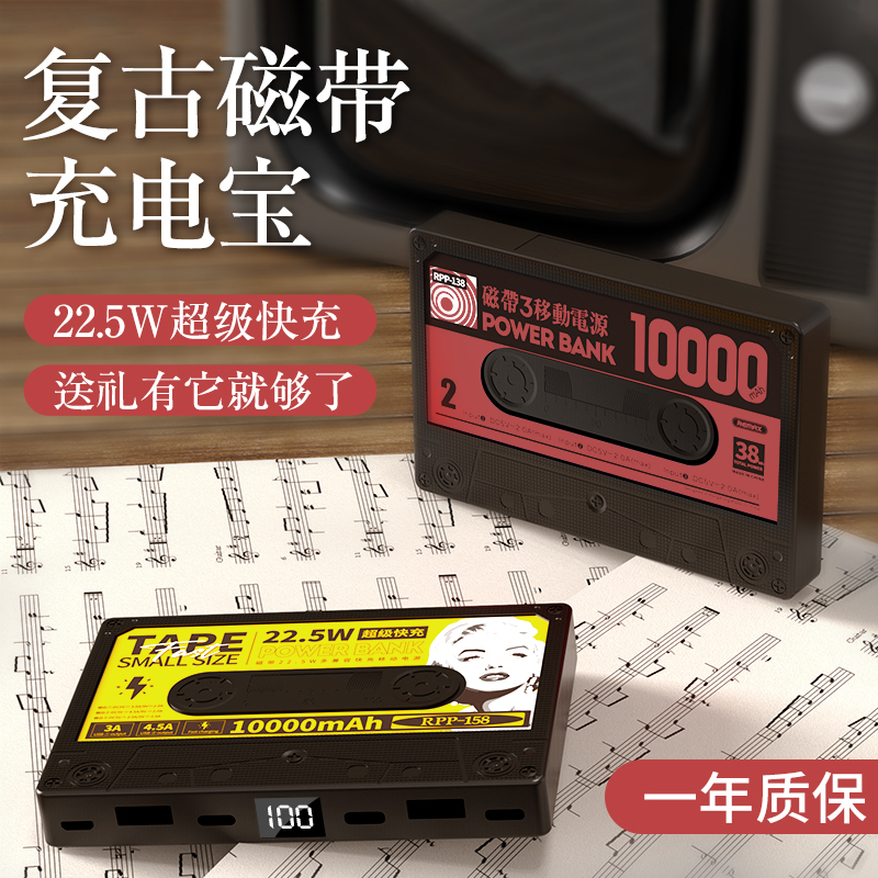 remax cassette retro mobile charging action power creative personality design Alien 38 gift send boy gift Apple 12 large capacity light slim able to bring aircraft small portable