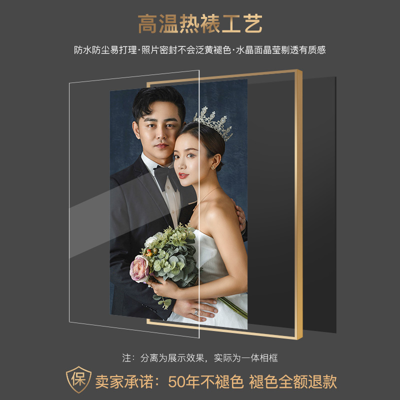 Custom crystal wedding photo frame hanging wall wash photo made into photo frame living room large size wedding photo metal narrow side