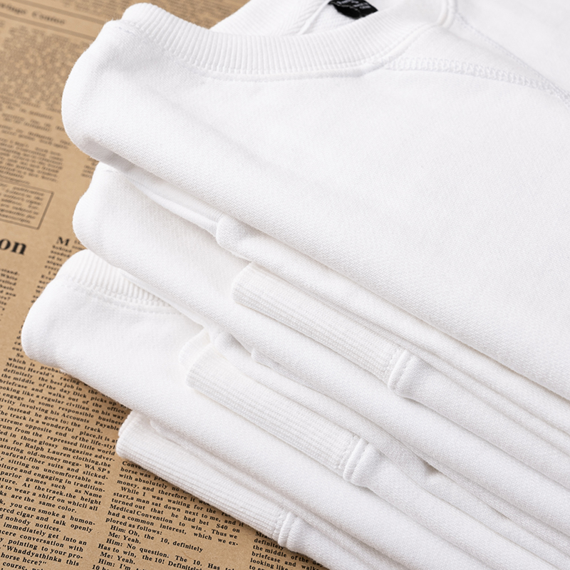 340g heavy terry cloth inverted triangle round neck thick cotton T pure white top solid color thick casual loose men and women