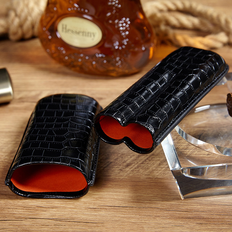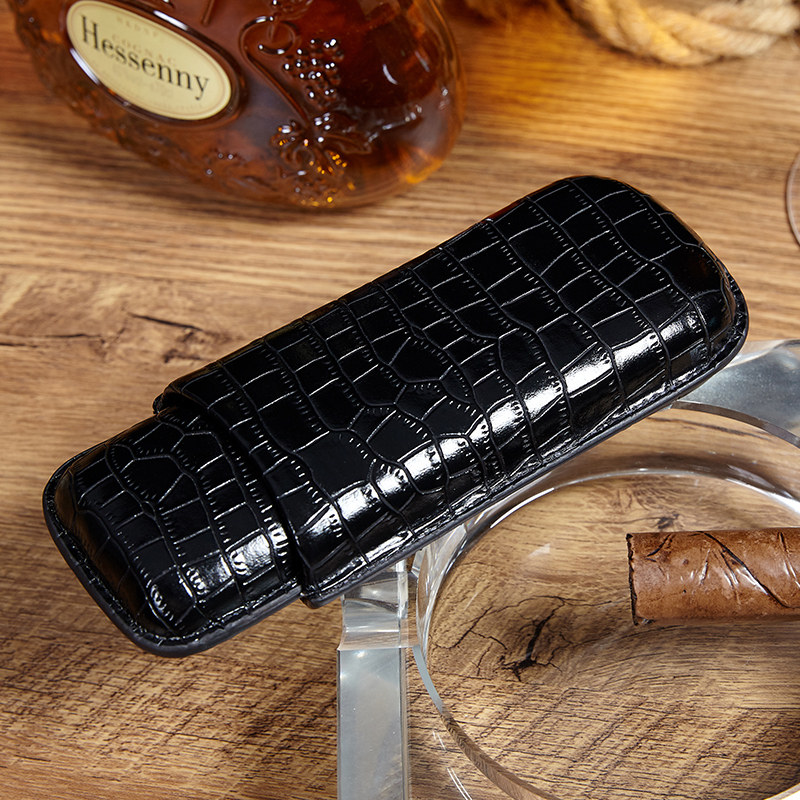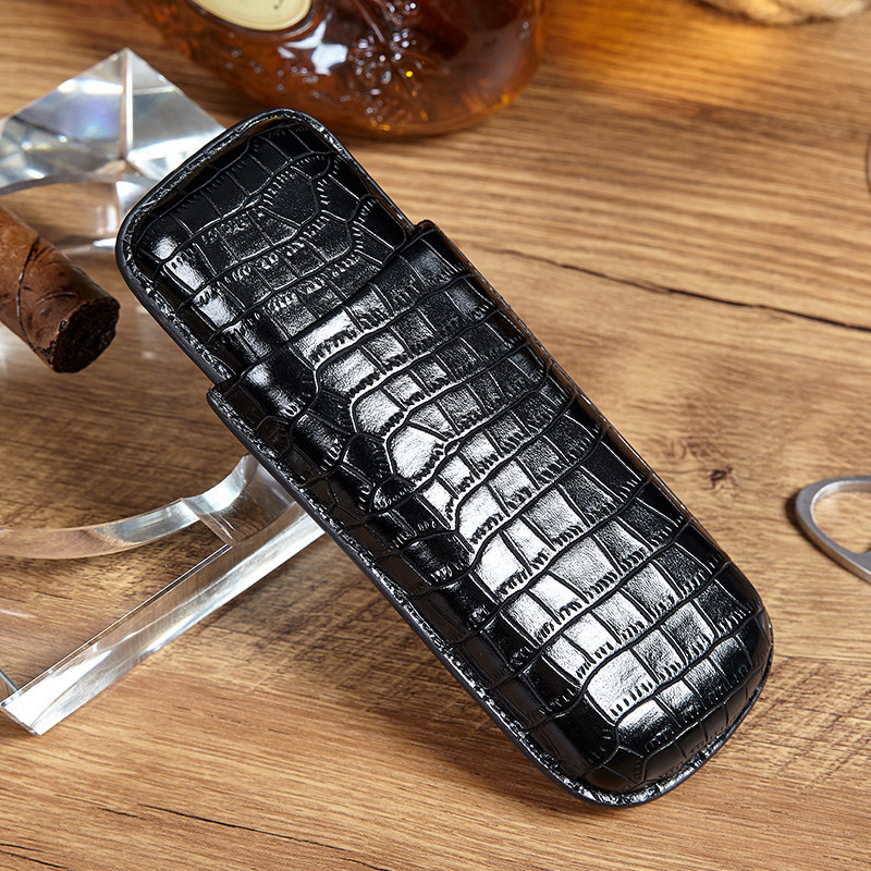 Premium Crocodile Pattern Cigar Leather Case Humidor Humidor 2 3-Pack Cigar Case Portable Travel Humidor