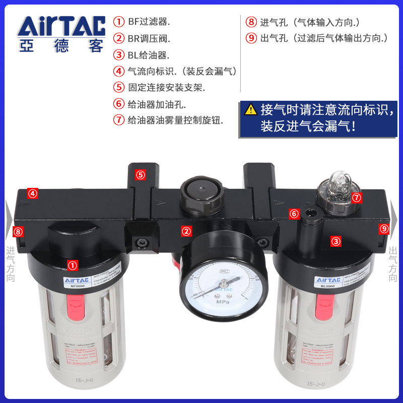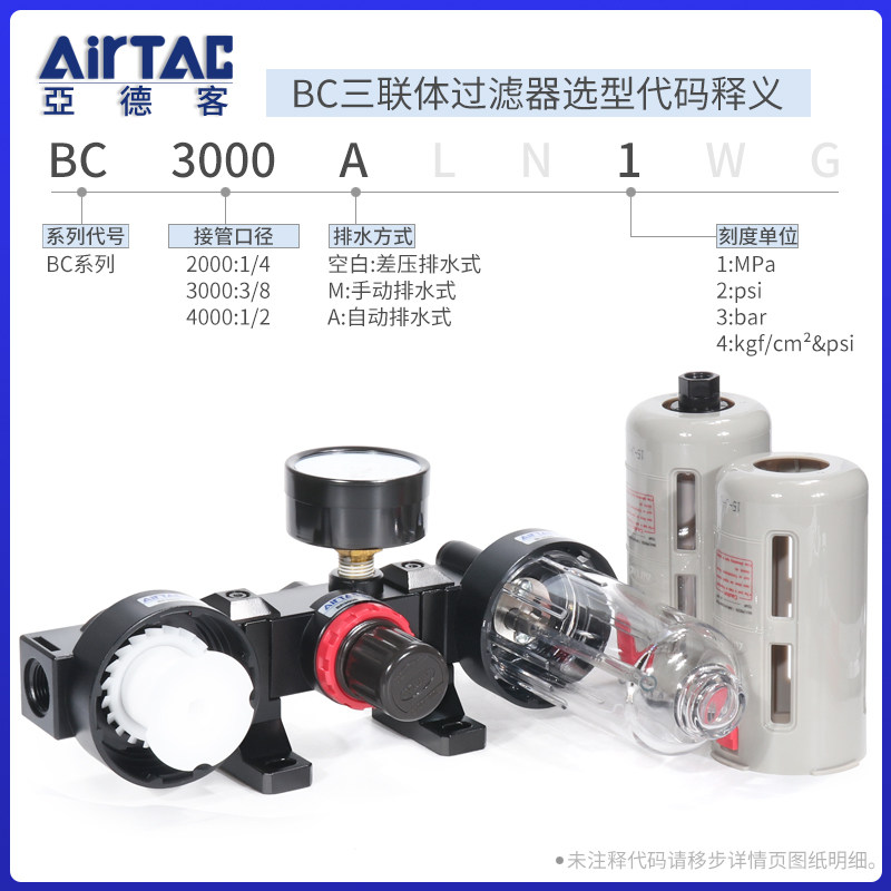 AirTAC Triple Oil-Water Separation Regulator Filter Air Source Processor BC20001 3000 4000A1W
