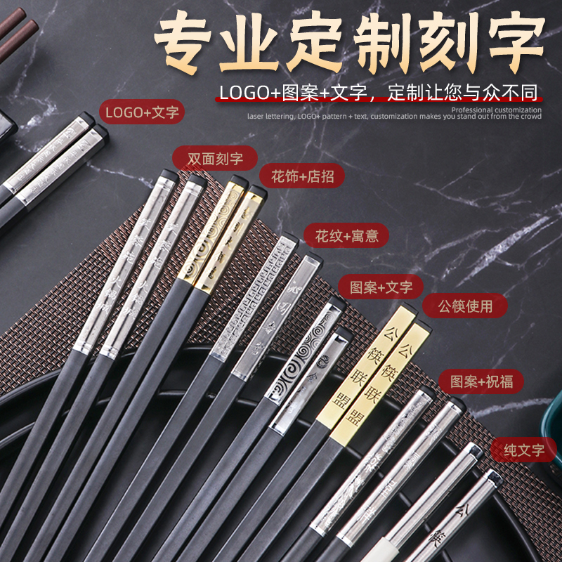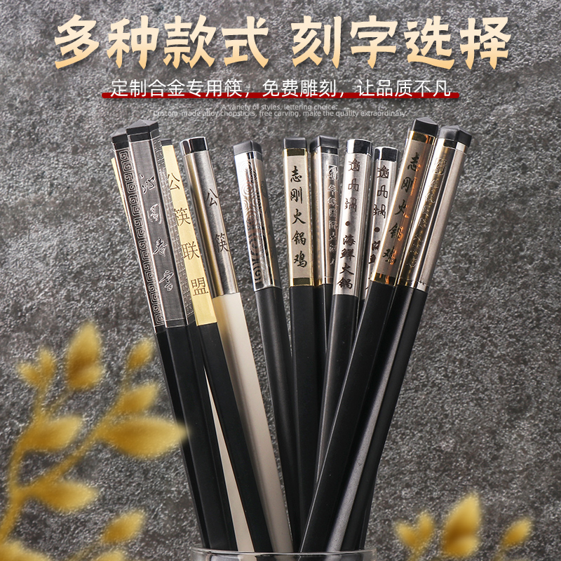 Hot Pot Catering Anti-Slip Alloy Public Chopsticks Dining Hall Hotel Commercial Chopsticks High-end Black Hotel Special Chopsticks Custom