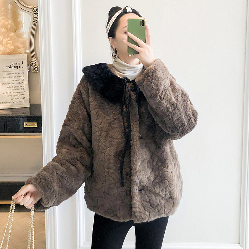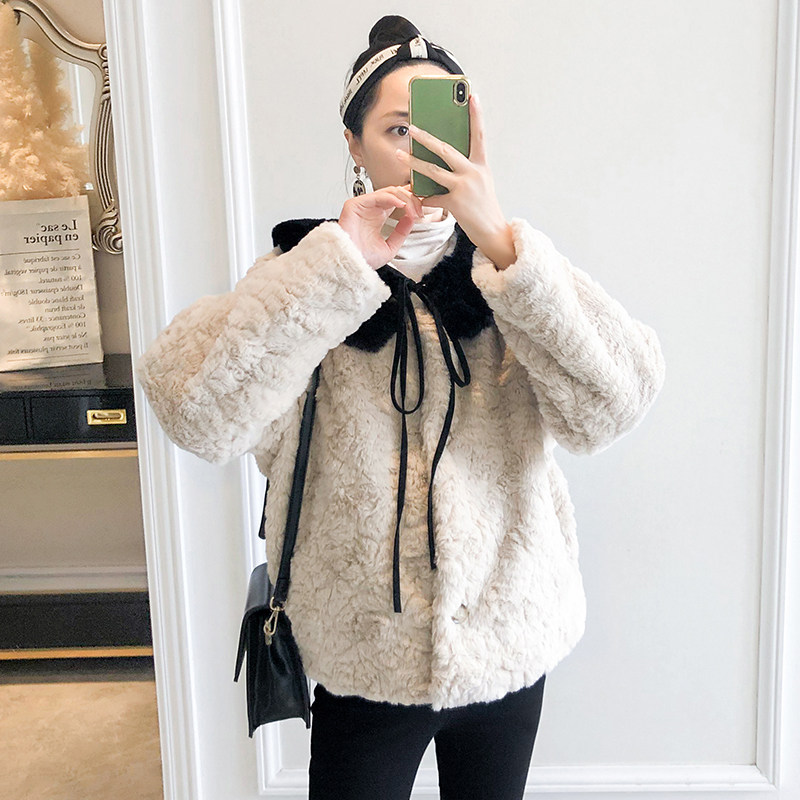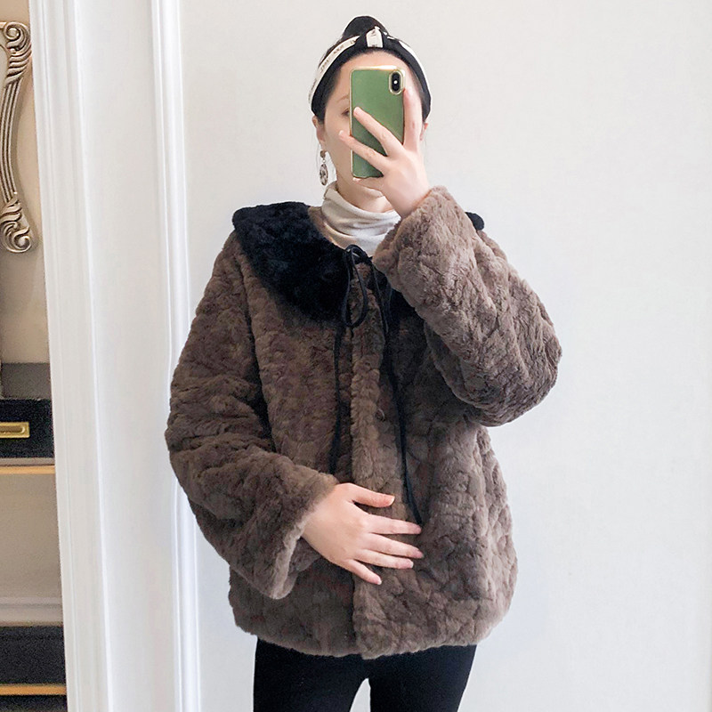 Small pregnant women's jacket autumn and winter pregnancy winter imitation lamb velvet sweet lapel cardigan foreign style thickened winter clothes