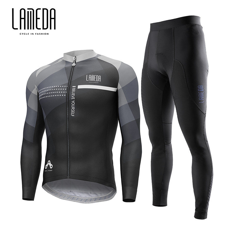 Lamparda autumn winter windproof grip suede long sleeve suit riding suit men's warm mountain road car bike jacket