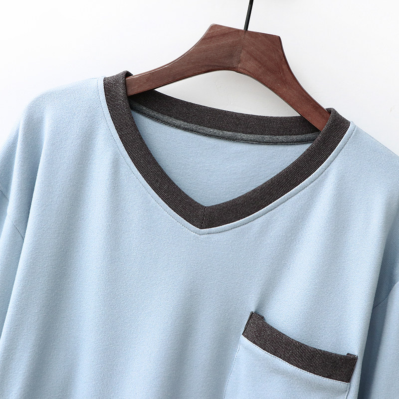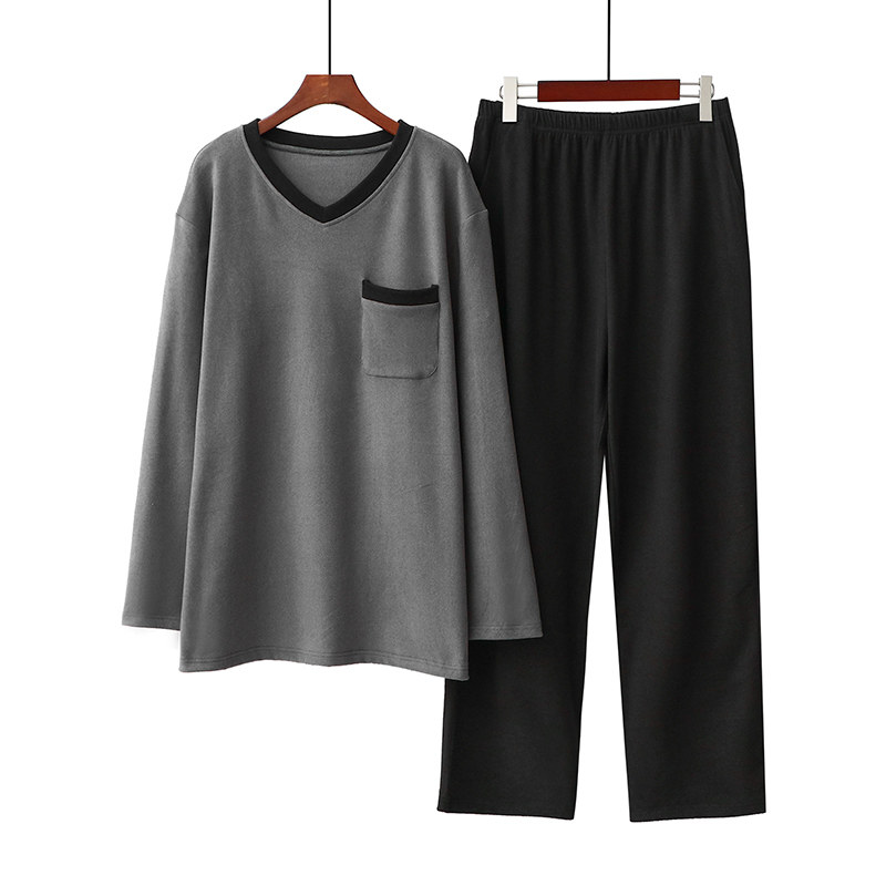 Winter men's pajamas, cationic double-sided fleece warm and thickened V-neck pullover home service couple spring and autumn suit
