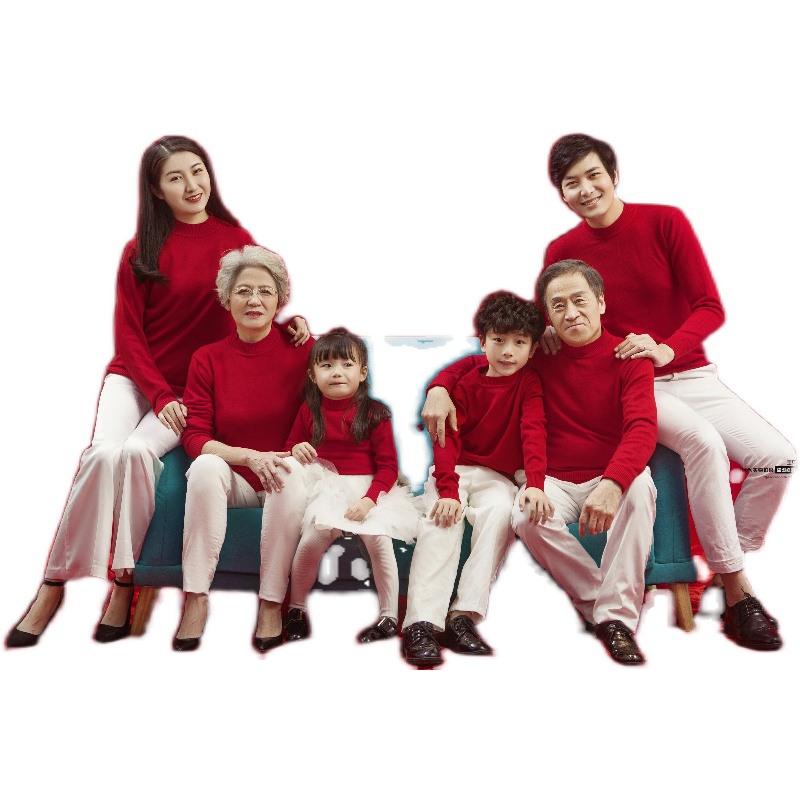 Children's photography theme clothing photo studio Photo family portrait Six parent-child outfit Chinese style Korean version of the red sweater parent-child