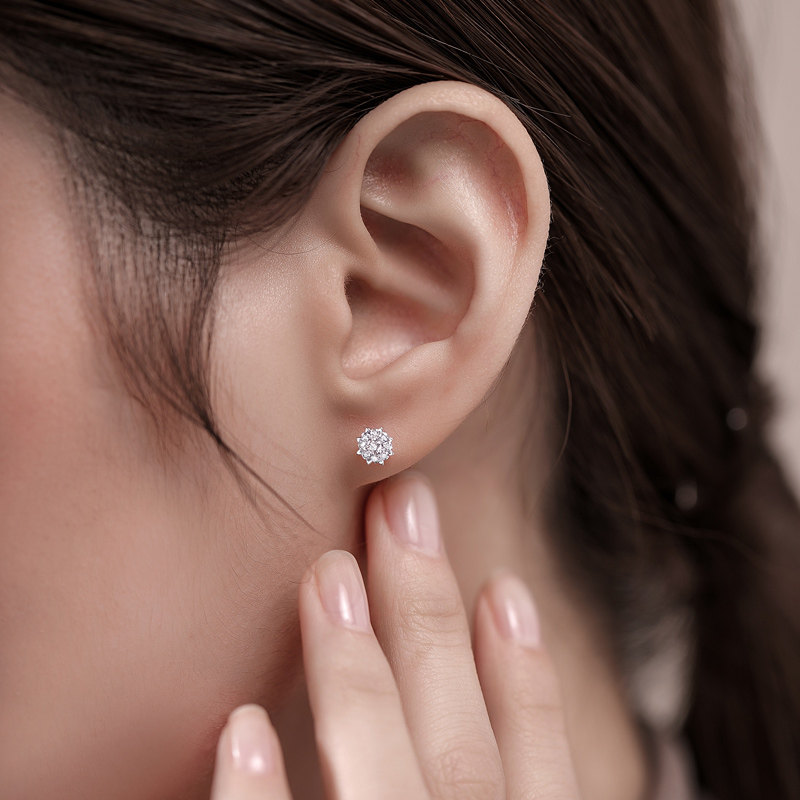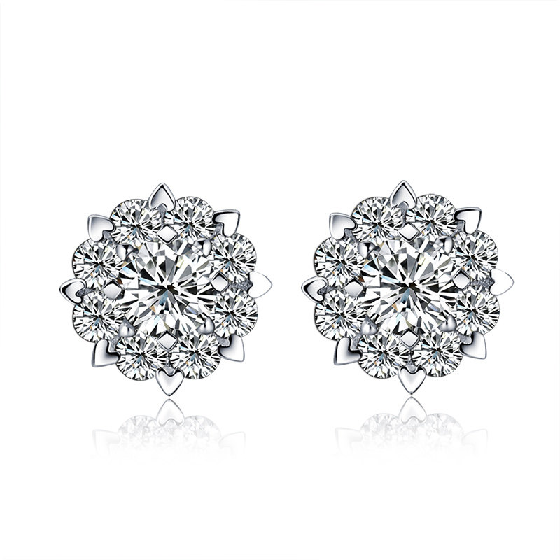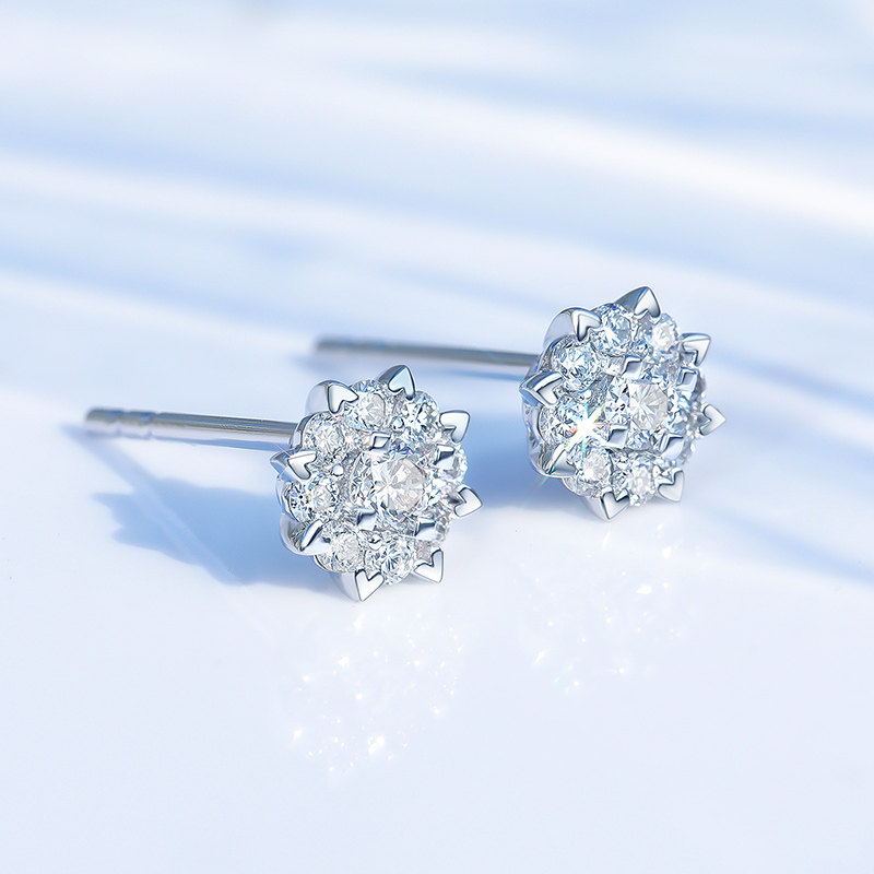 Happy diamond diamond earrings women's real diamond white gold earrings 50 points six-claw masonry 18K gold four-claw broken diamond earrings earrings earrings