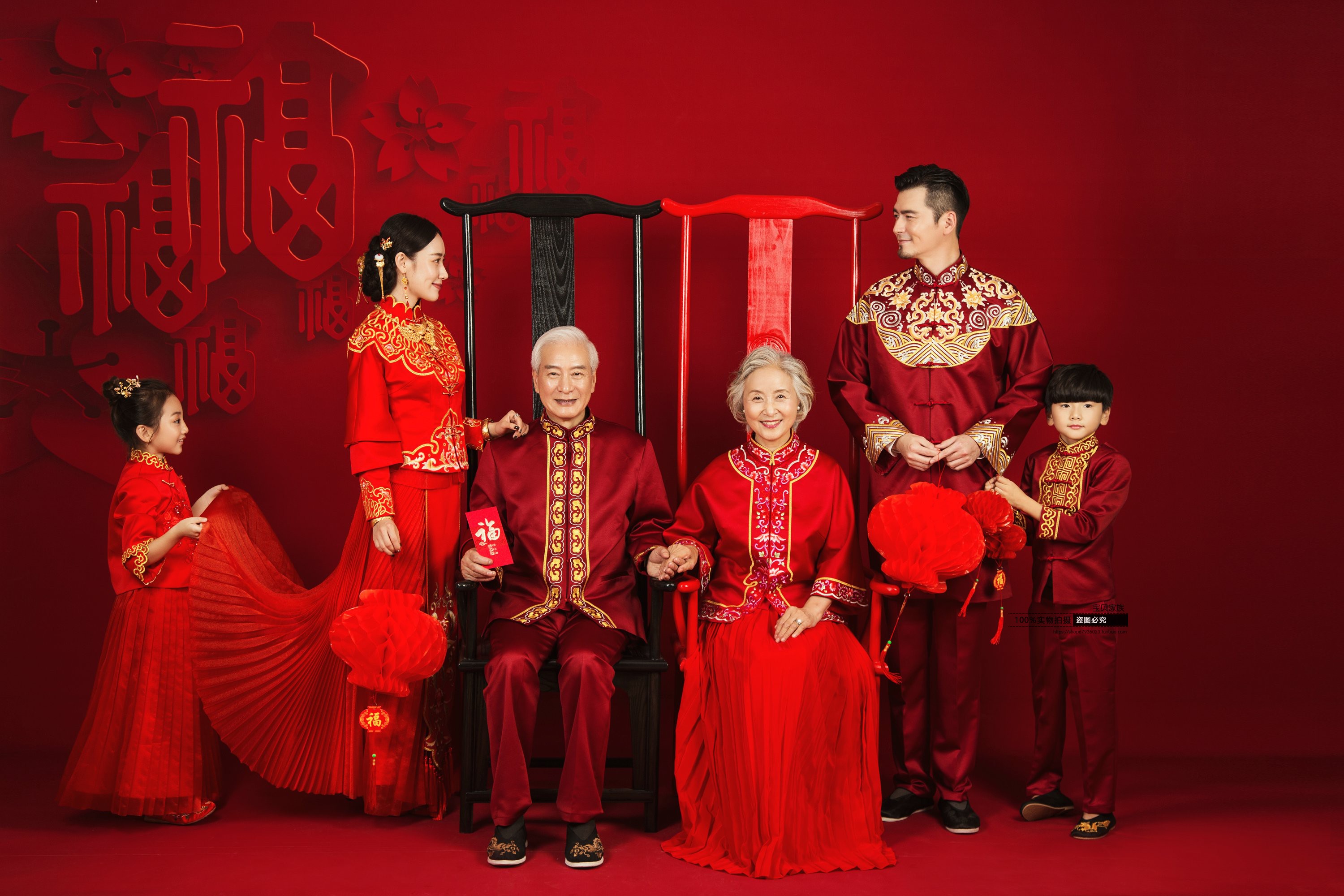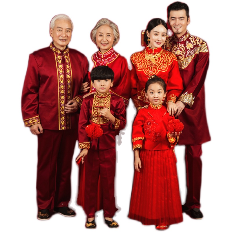 New photo gallery Full family Foothemed photo costumes New Year's festive photos Family dress embroidered and parent-child photo clothing