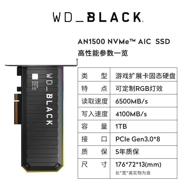 WDBLACK AN1500 1TB Western Data SSD Solid State Drive PCIe3 0 Desktop NVMe Expansion Card