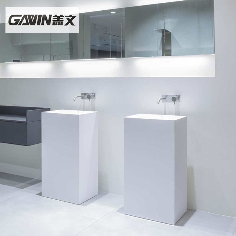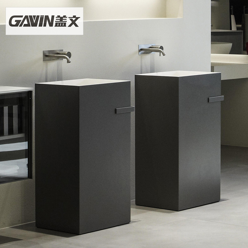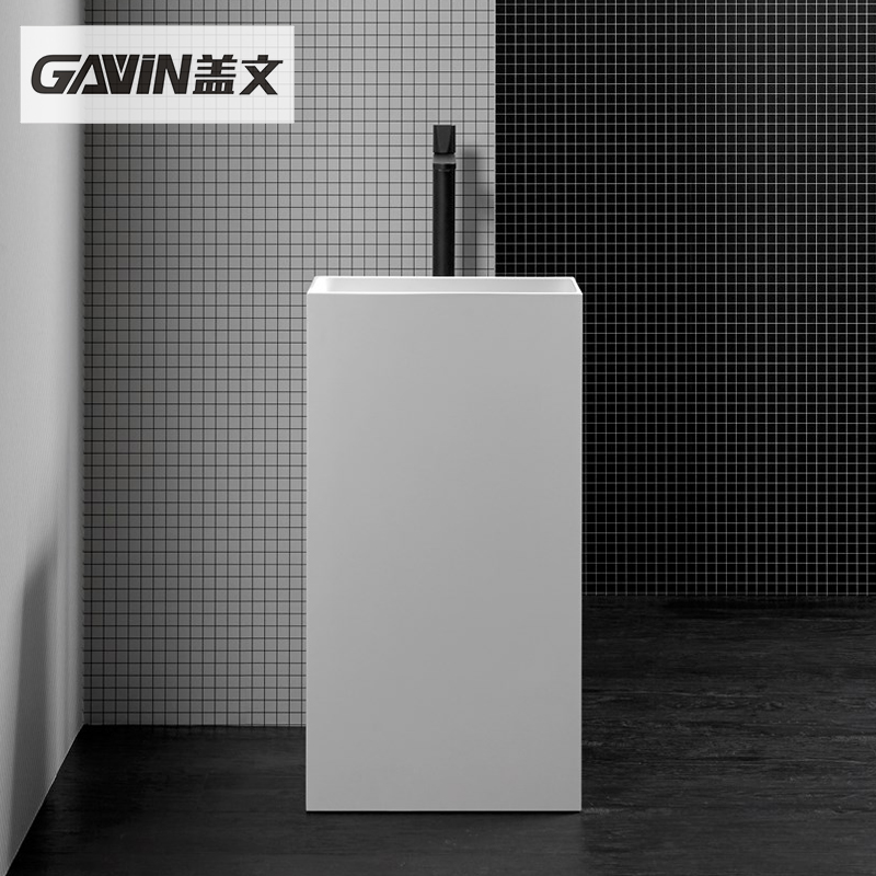 One-piece artificial stone column basin balcony wash square bathroom home mini wash basin floor-to-ceiling wash stand