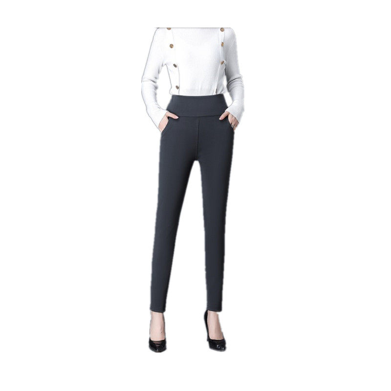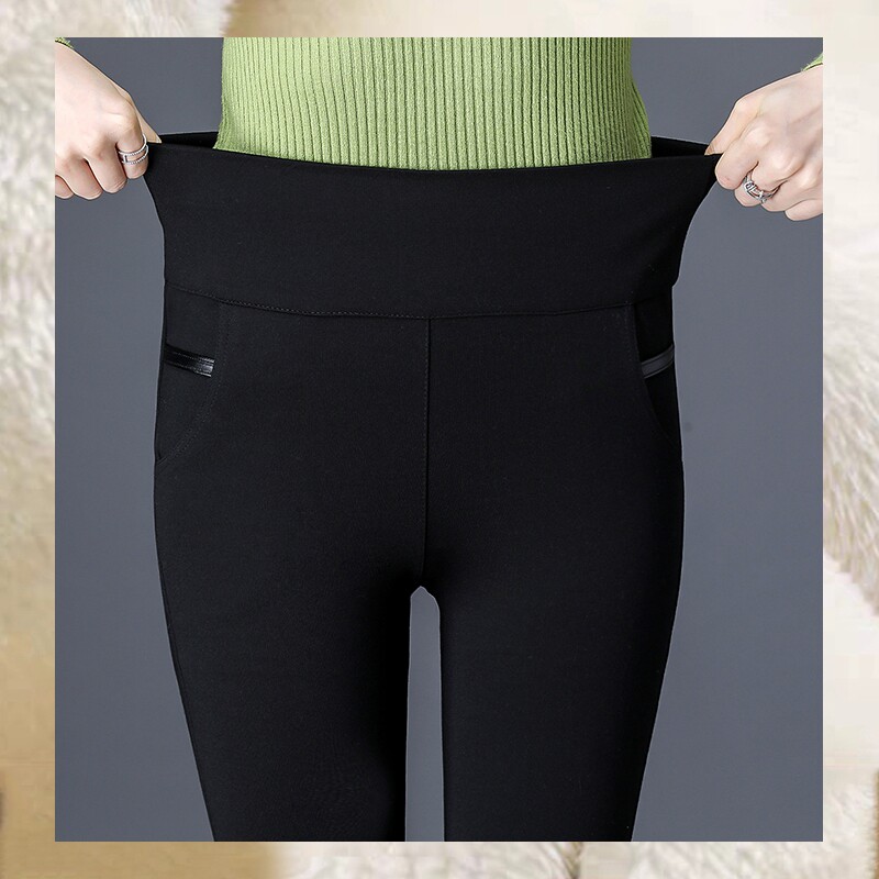 Japanese gush thickened inner lap pants female outside wearing high waist collection and warm elastic display slim lamb suede one-piece pants large size