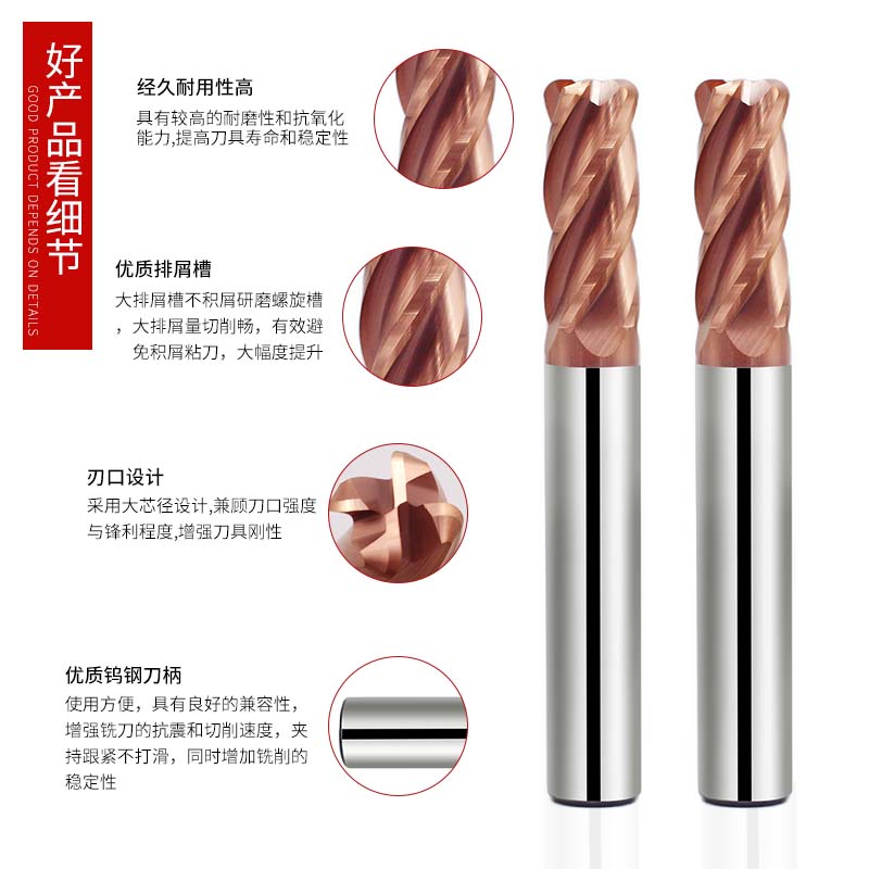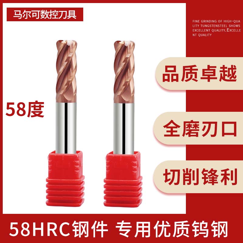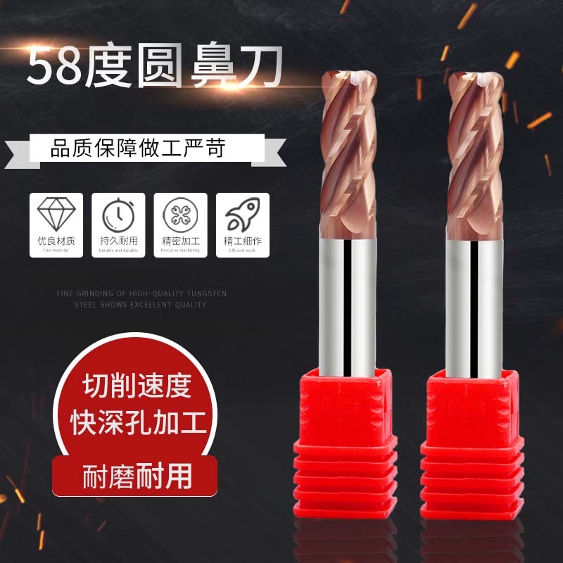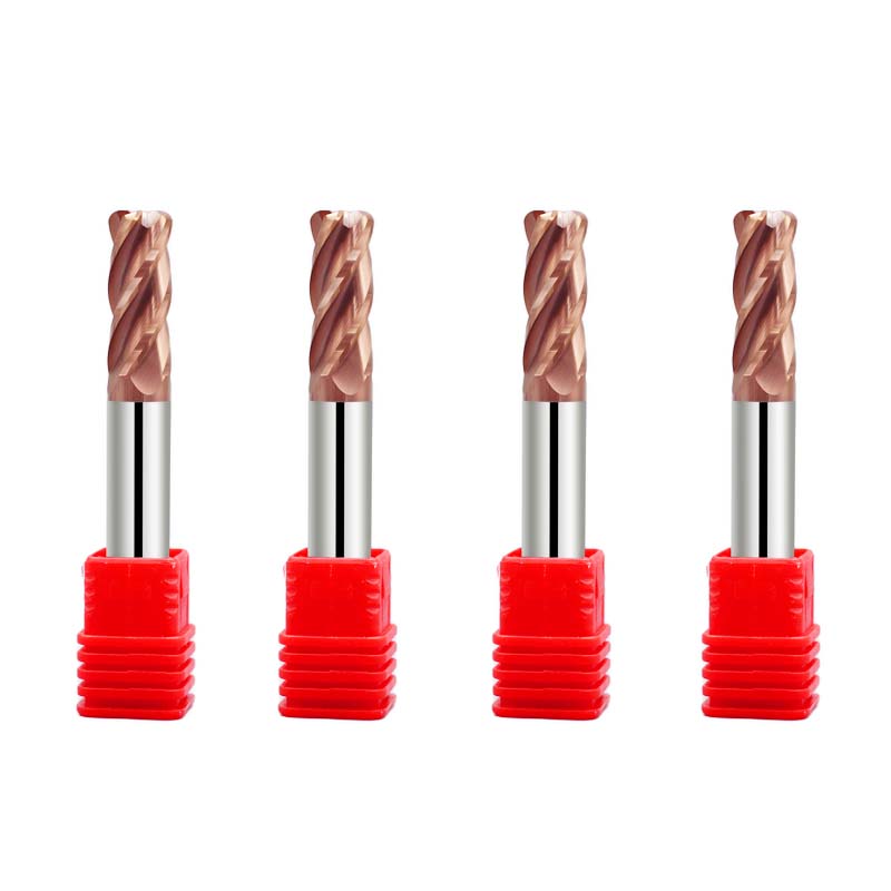 58 Degrees Tungsten Steel Upright Milling Cutter Cnc Bull Nose Knife Hard Alloy R Corner Milling Cutter Ancient Bronze Color Coating 4 Blades Numerical Control Round Nose