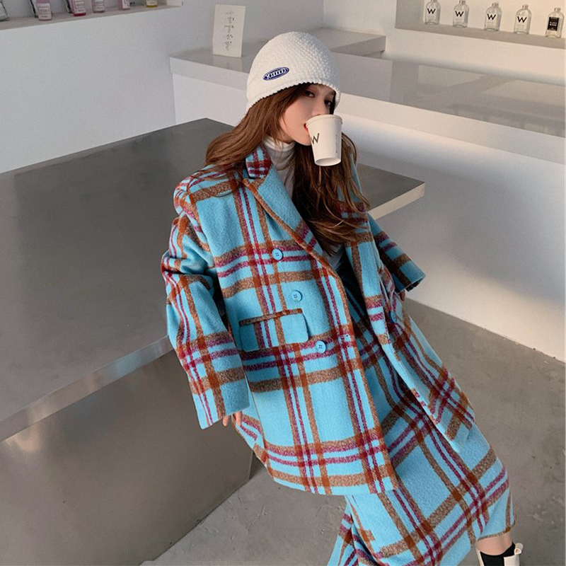 2020 autumn and winter new women's ins trendy Korean version loose all-match Xiaoxiang style suit woolen coat