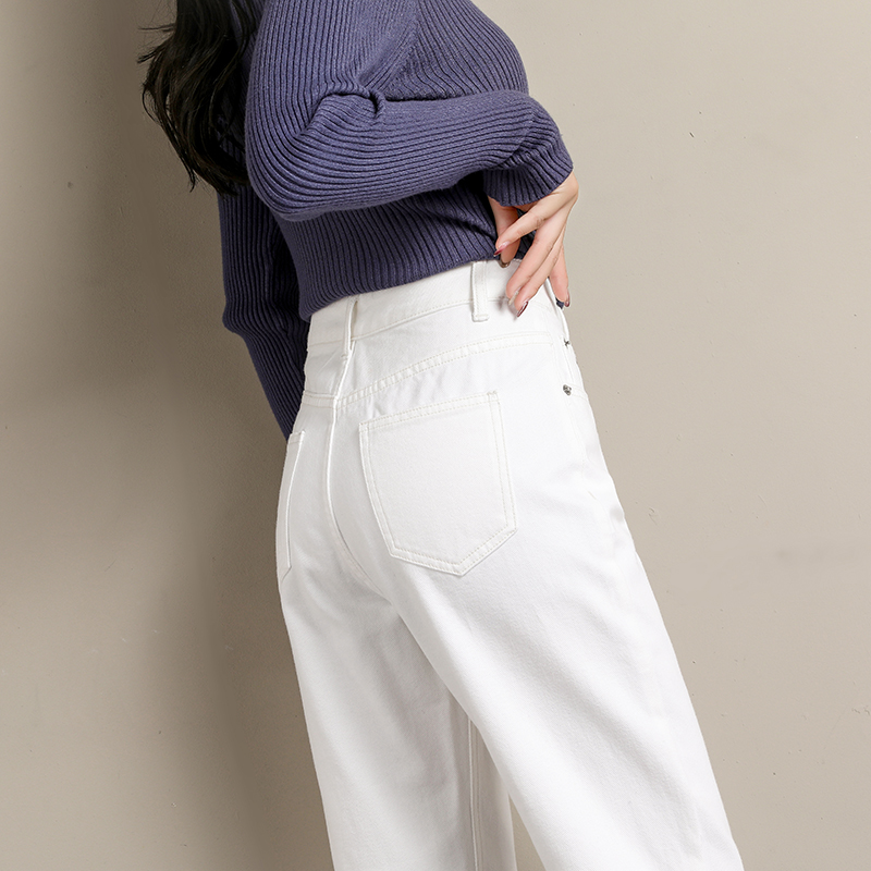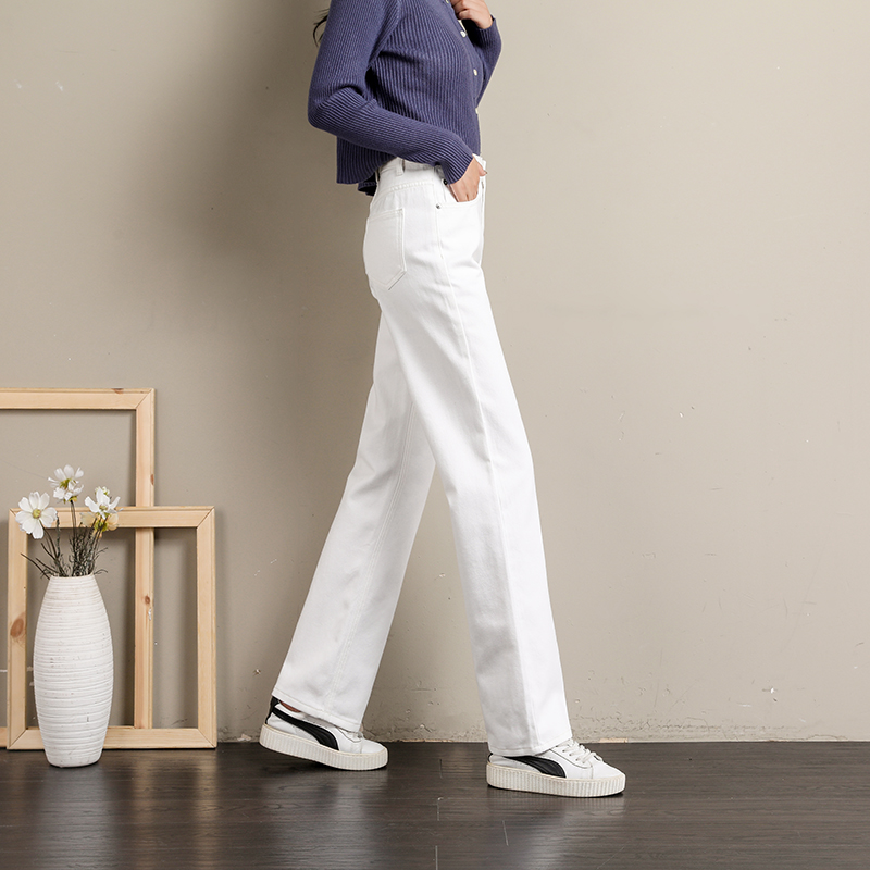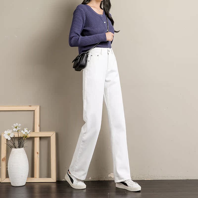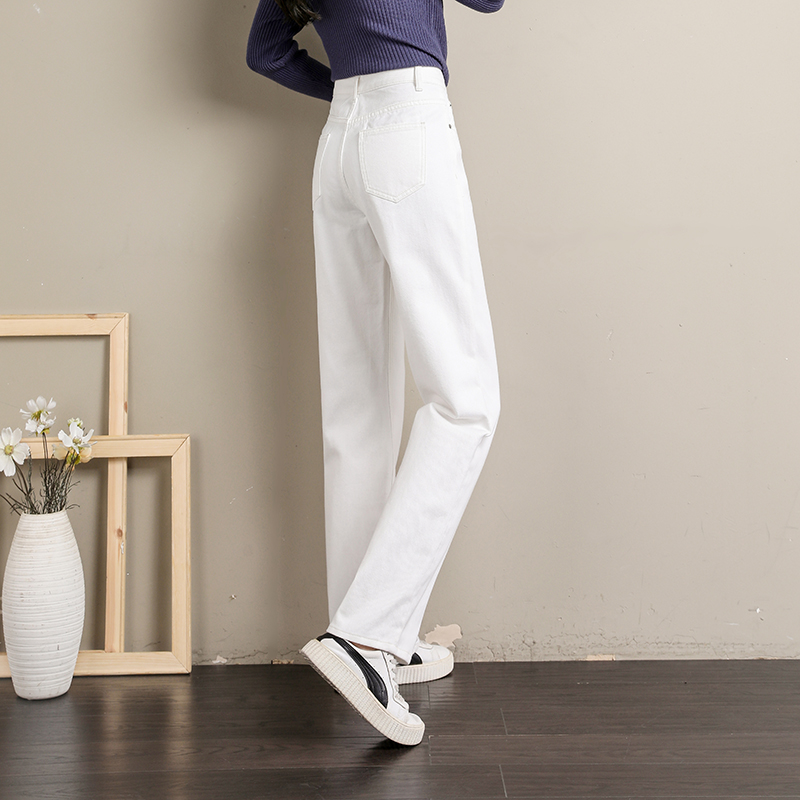 White Jeans Woman Loose Straight Drum High Waist Display Slim 2020 Autumn Winter New Fashion Small Broadlegged Pants Lady
