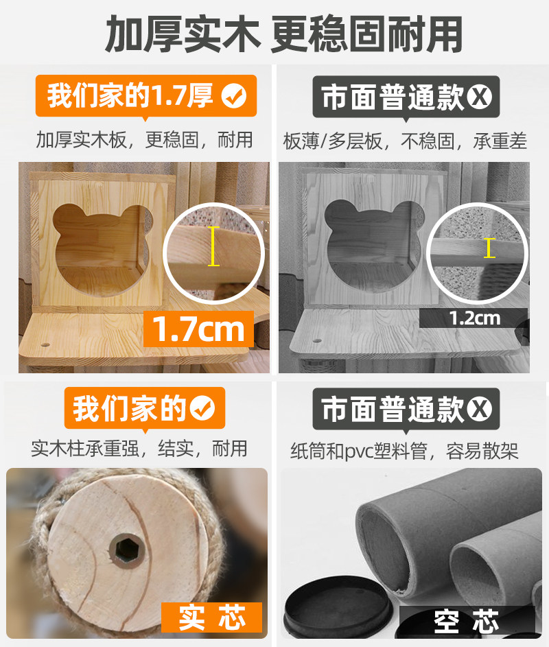 Capino cat climbing frame solid wood cat tree one large luxury cat litter cat frame wooden cat house multi-layer jumping platform