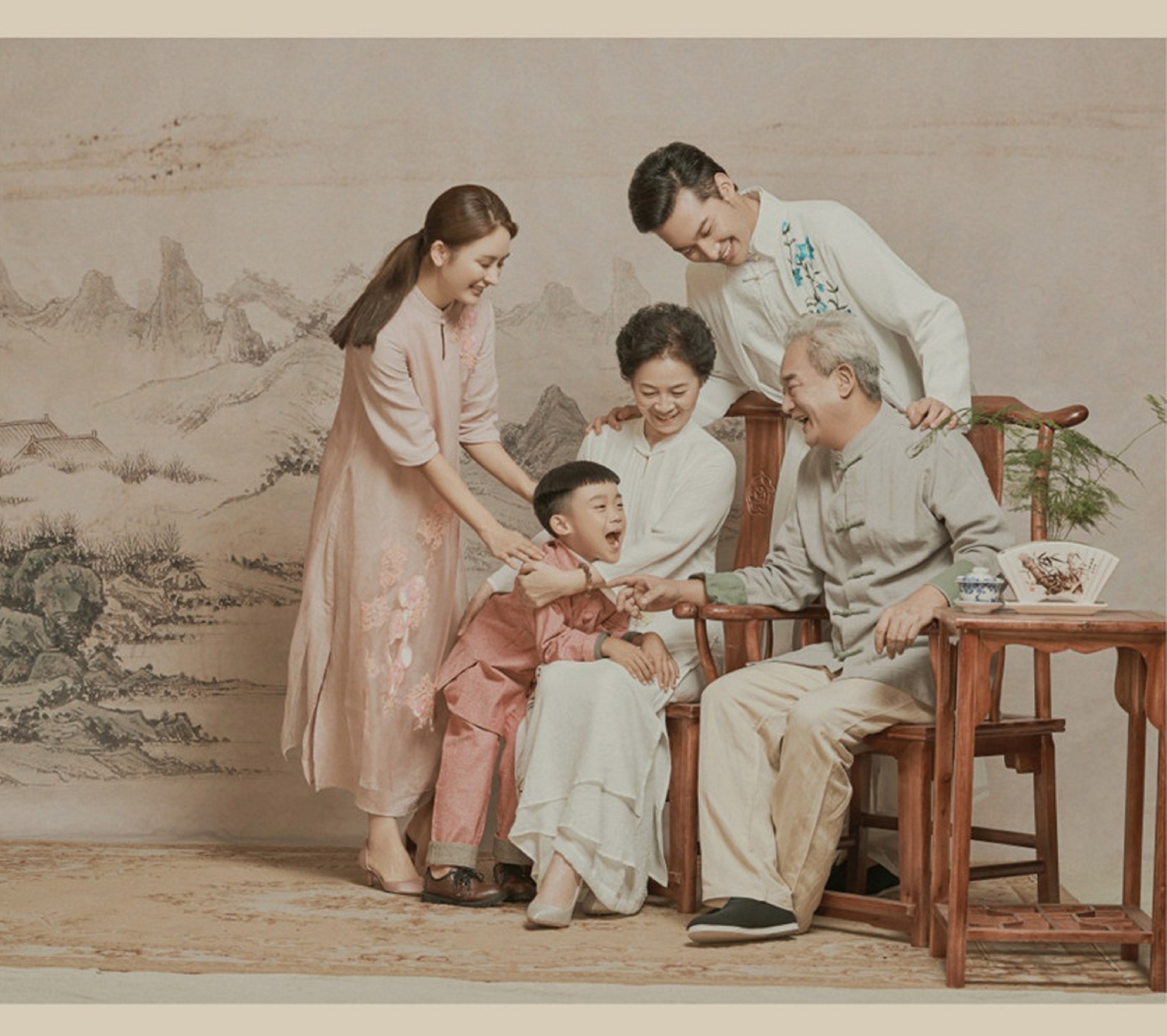 New photo studio family portrait photography clothing Chinese style family of four or six family photo parent-child clothing children's clothing