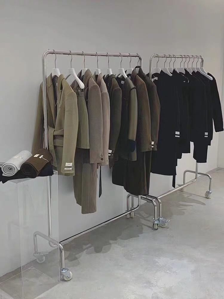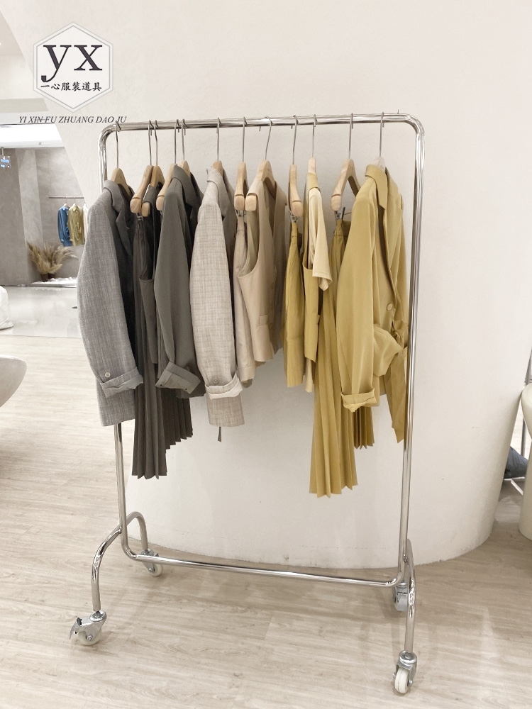 Clothing store display rack women's clothing store stainless steel shelf clothes rack floor-to-ceiling mobile clothes rail silver pulley