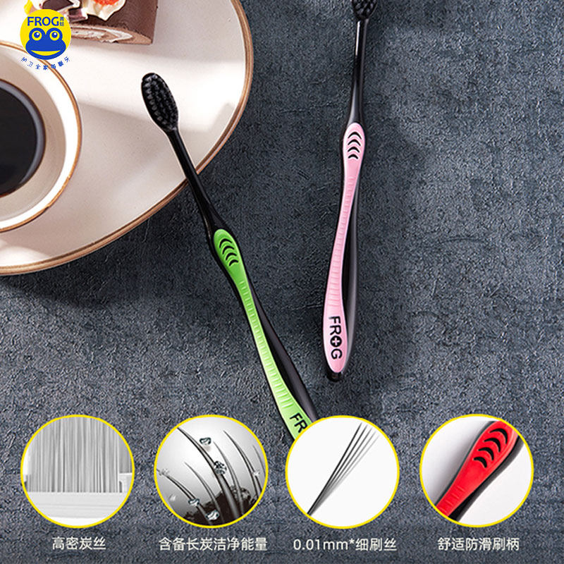 Frog toothbrush QT 670 carbon brush coal fiber soft hair adsorption cleaning tooth antibacterial household assembly 8 units