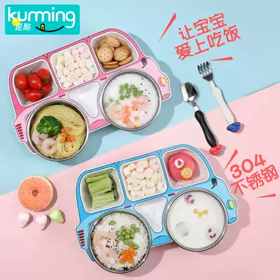 Children's dinner plate stainless steel baby eating bowl chopsticks cartoon anti-fall household spoon suction cup split baby tableware set