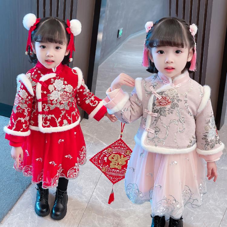 Baby New Year to suit China Wind girl Tang Costume Hanfu Skirt baby snatches Lunar New Year's dress Gown Qipao Winter Clothing Baiyenfu