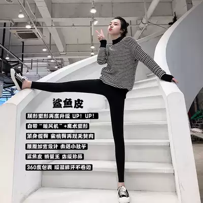 Tide brand underwear women Spring and Autumn new gray shark skin wear autumn and winter nine points thin leg pressure tight yoga pants