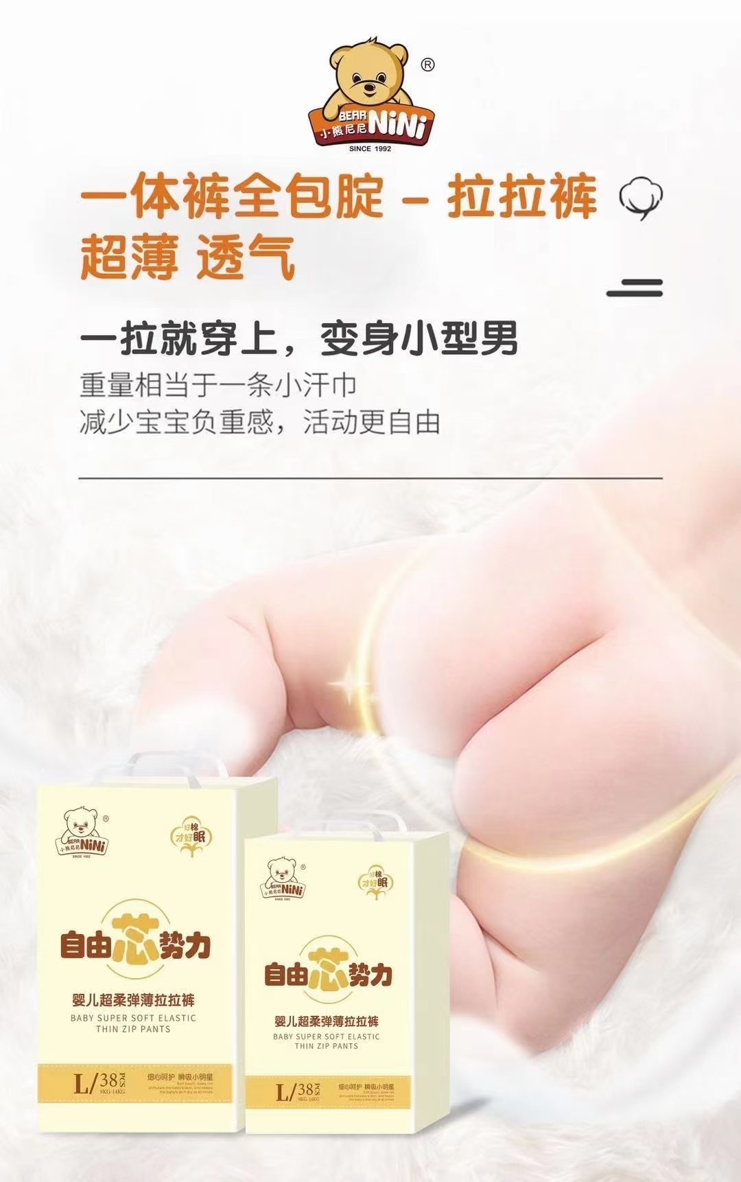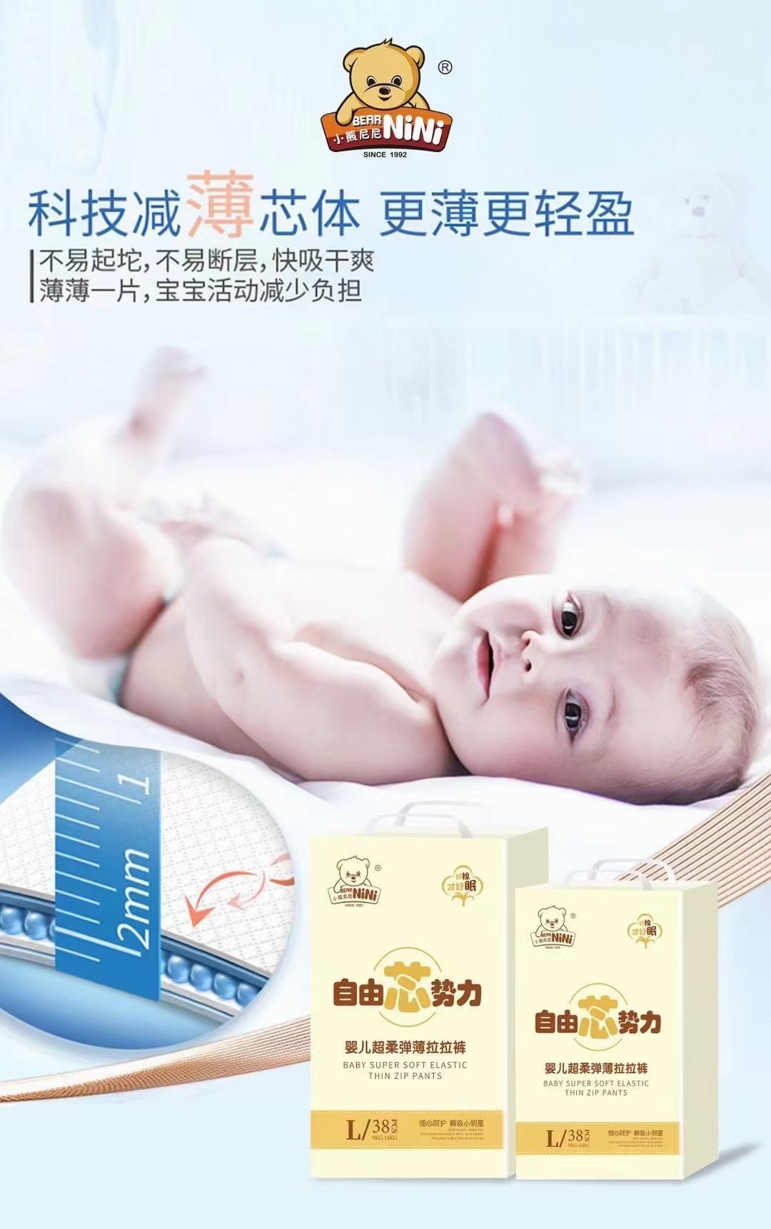 Nini the Pooh Baby Super Soft Stretch Pull Pants, which do not leak all night, so that the baby sleeps more soundly