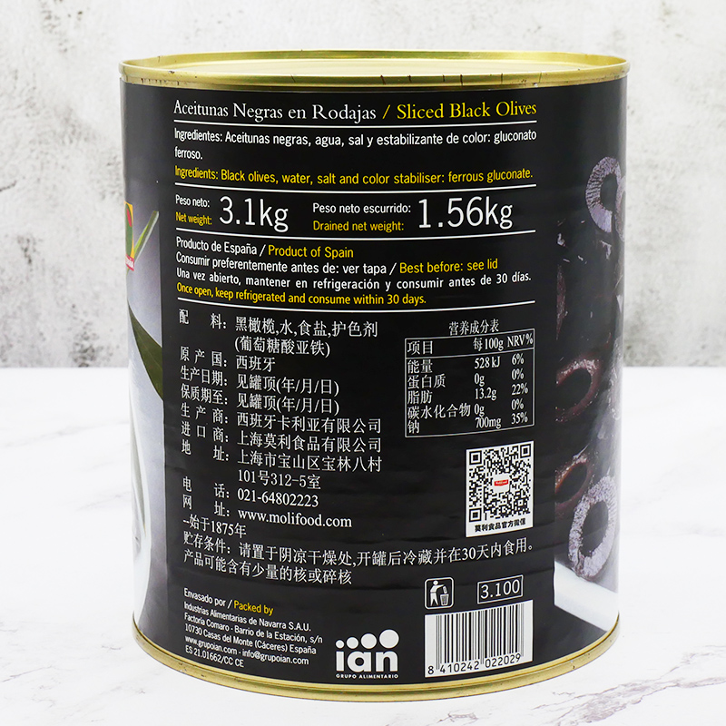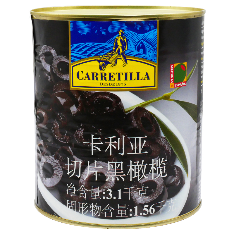 Spain imported Kalia sliced black olives 3 1kg catering package pizza with pitted black water olive canned