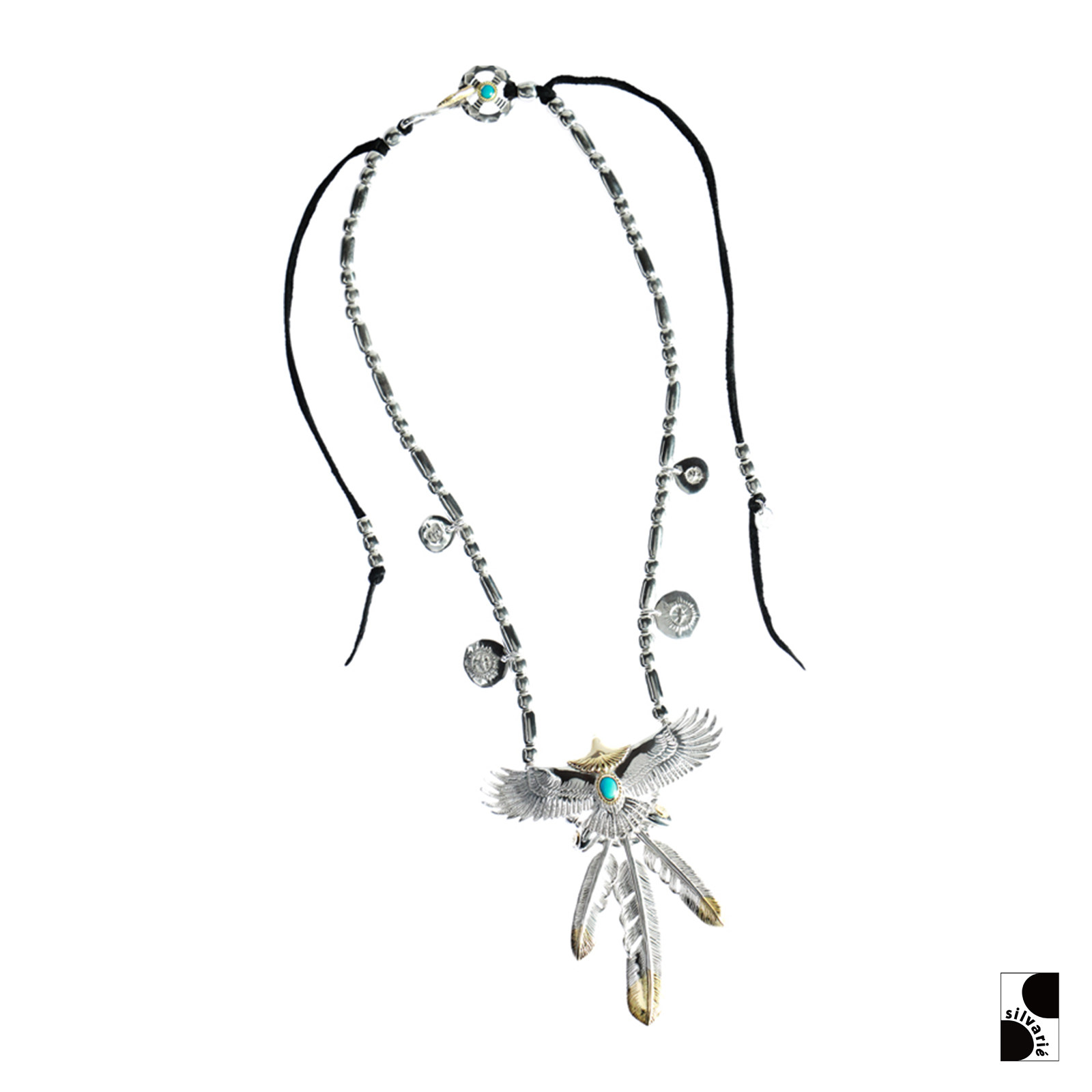 =silvarie=GOD SUNS Gold Head Gold Rope TQ950 Sterling Silver Indian Style Heavy Carved Eagle Pendant