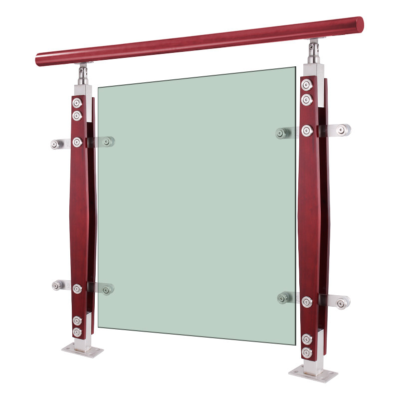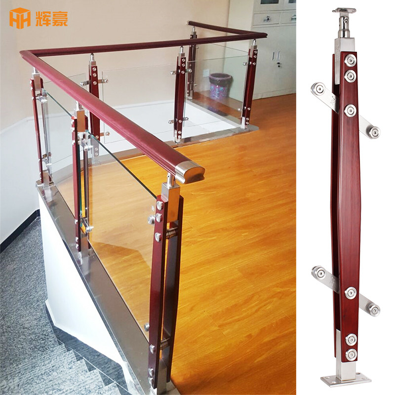 Staircase handrail guardrail Solid wood stainless steel glass railing column indoor and outdoor home light luxury simple balcony fence