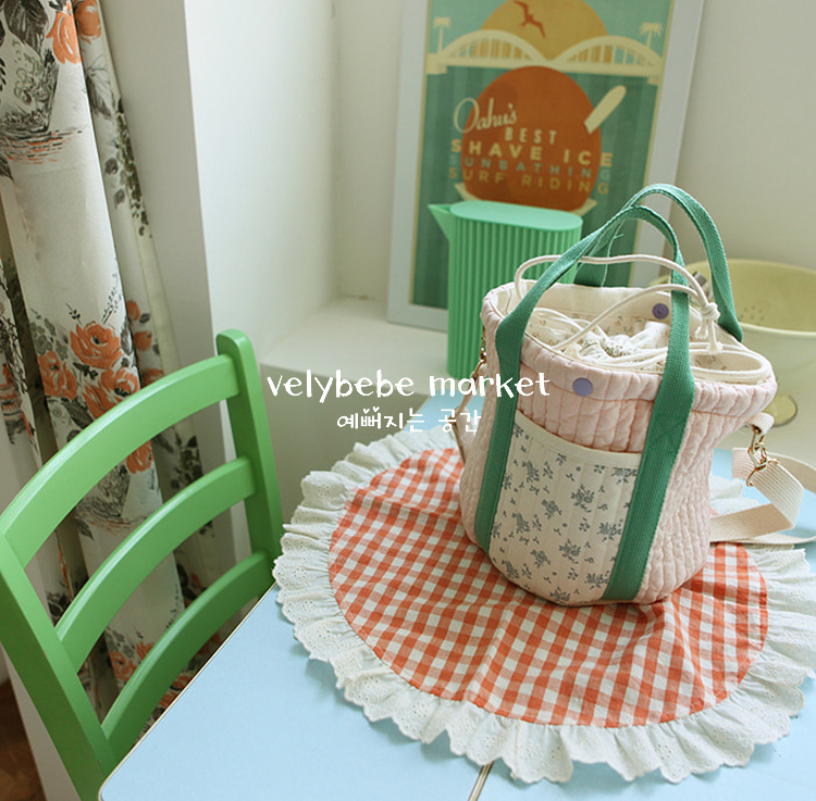 velybebe Korea in Little Red Book with quilted cotton bucket bag mommy bag