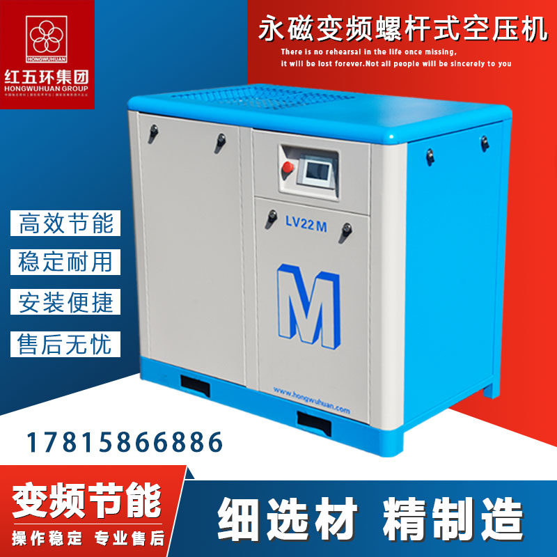 Red five-ring screw air compressor high voltage laser cutting 380V large industrial grade permanent magnet frequency conversion power frequency air pump