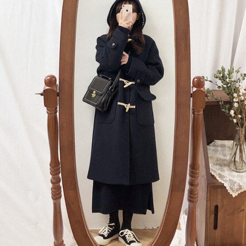 International big-name high-end women's clothing clearance pick up leak tail single processing foreign trade export original single horn button woolen coat tide