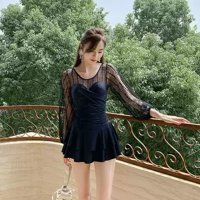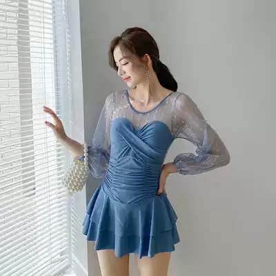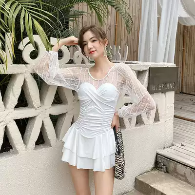 Swimsuit women are thin and cover their stomachs, Korean ins style, small breasts, gathered, conservative skirt-style one-piece swimsuit, hot spring fairy fan