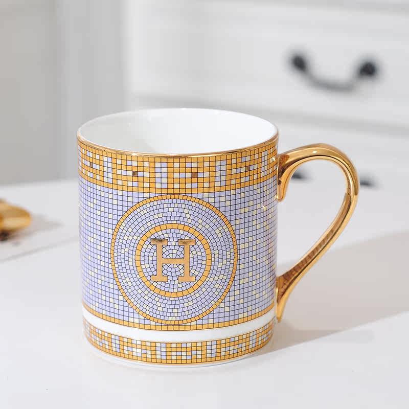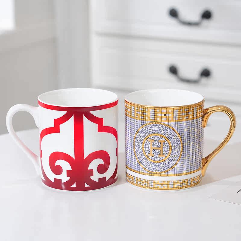 European-style H ceramic cup boss cup tea cup water cup bone china mug milk cup large capacity coffee cup couple cup