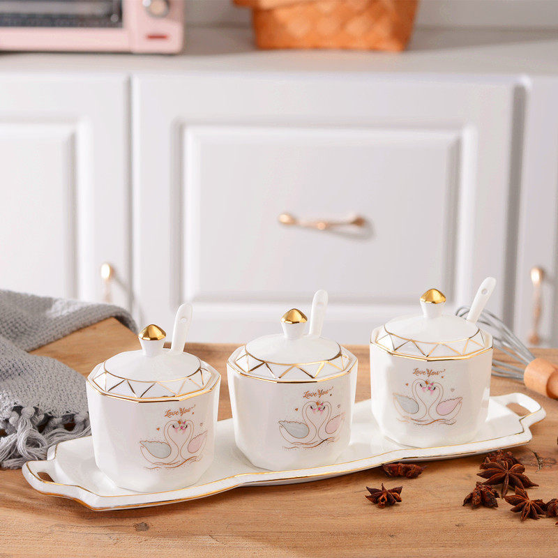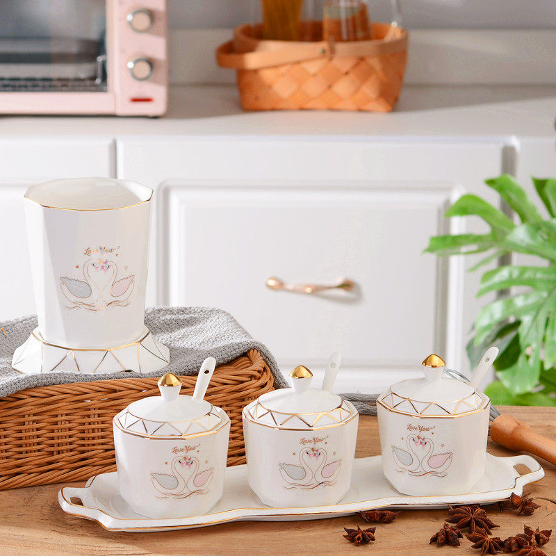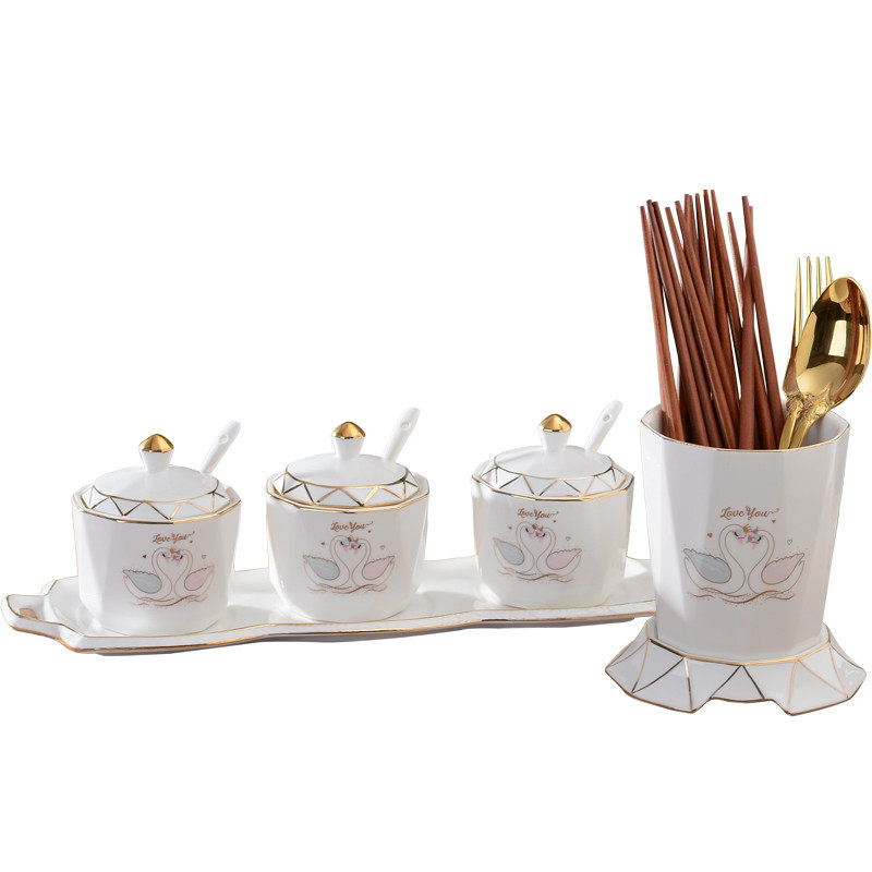 European light luxury kitchen ceramic seasoning jar salt sugar chili oil seasoning jar chopsticks tube combination set chopsticks basket
