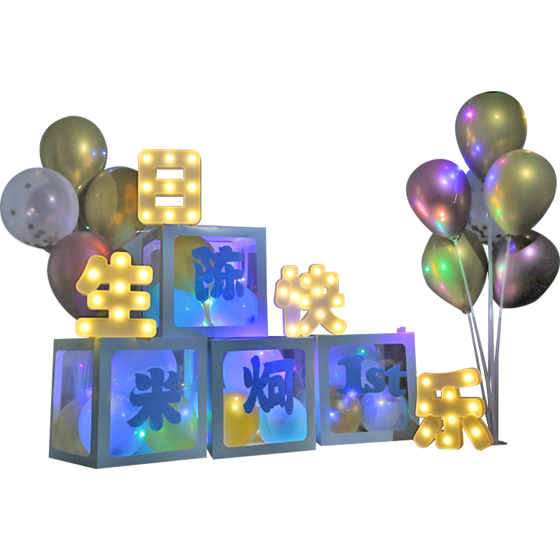 Birthday decoration party scene layout Net red transparent balloon box boy girl baby year old name glowing
