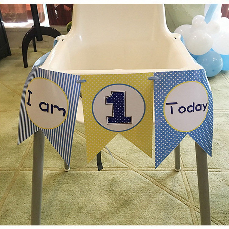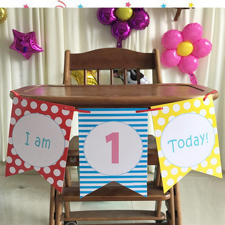 Xinjiang baby 100 days old party background decoration arranged birthday color Flag i am one dining chair pull flag-Taobao
