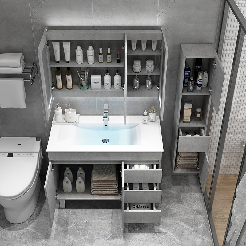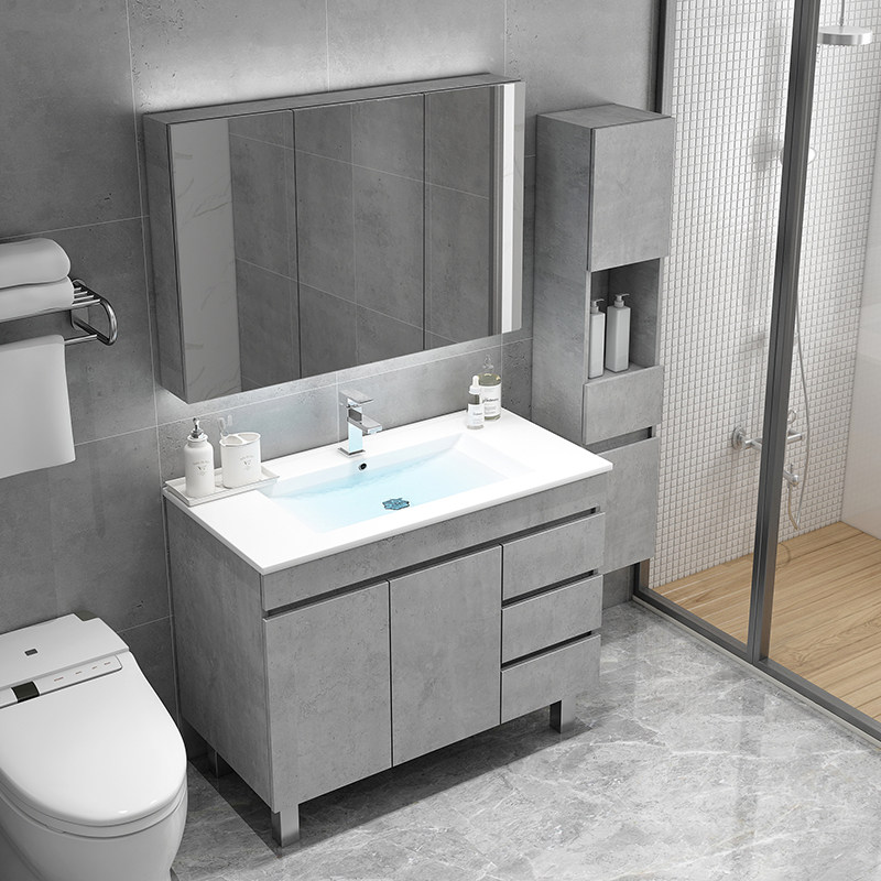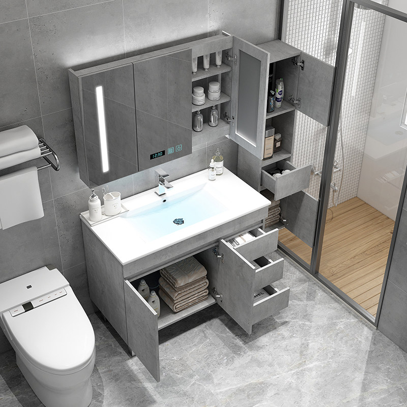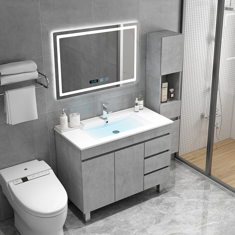 Nordic intelligent floor-standing bathroom cabinet combination small family wash basin cabinet dressing room mirror cabinet wash table wash basin