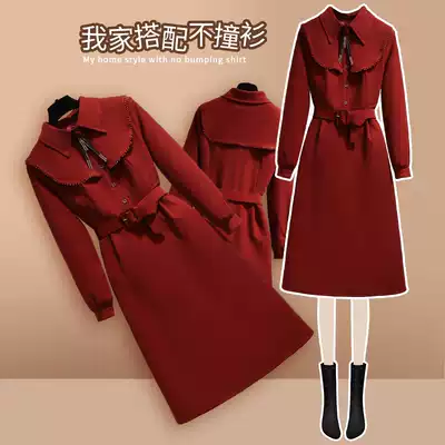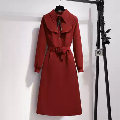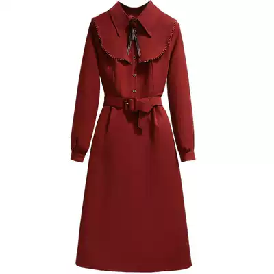 Long-sleeved red dress autumn 2021 new female French retro waist thin high-end temperament long skirt