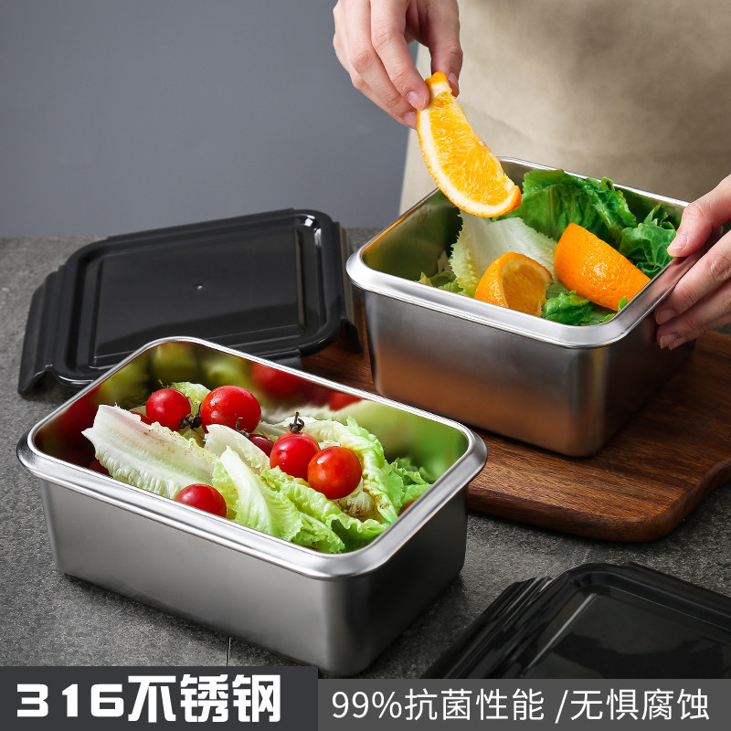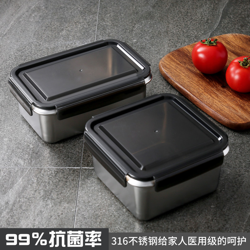 Food grade 316 stainless steel refreshing box antibacterial rectangular 304 lunch box refrigerated meal with lid sealed box