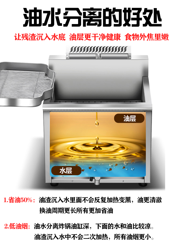 Oil-water separation fryer Commercial gas gas large capacity French fries fried chicken skewer automatic temperature control frying oven