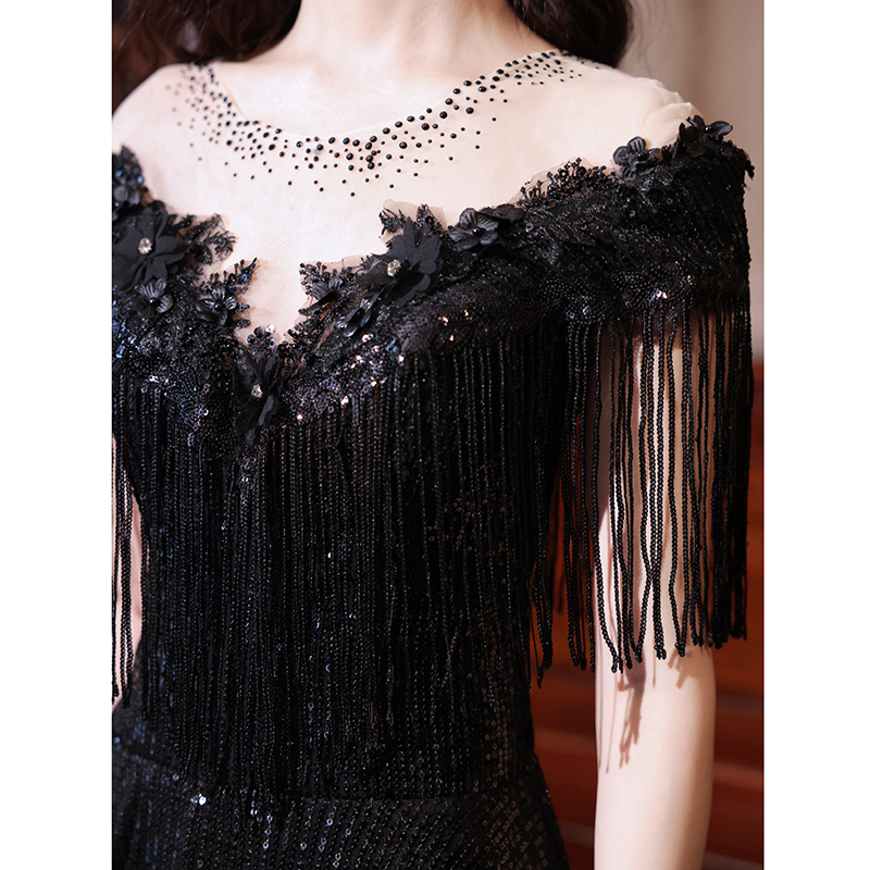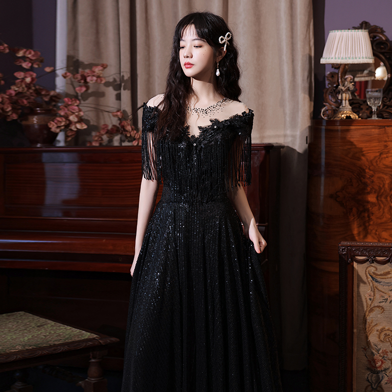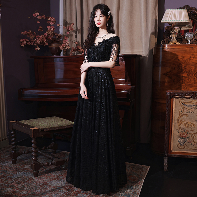 Black Evening Gown Dress Lady 2022 New Banquet High-end High Quality Art Exam Elegant Light And Luxurious host