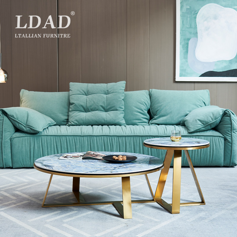 LDAD Nordic Italian light luxury round slate tea table creative stainless steel designer home marble tea table