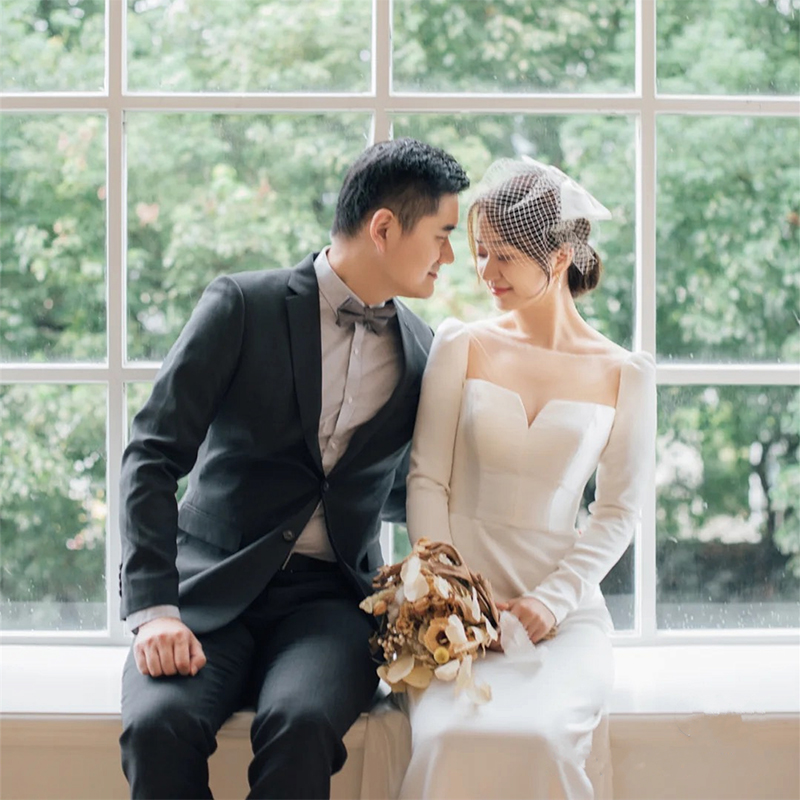 Fa-style light wedding dress temperament Senson dreamy out of the door 2022 new long sleeves satin finish in a guest dress superfairy