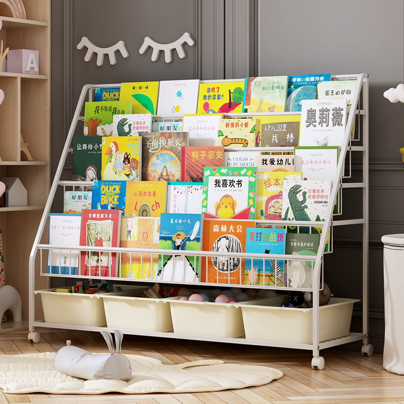 Baby bookshelf Children's bookshelf picture book rack integrated household toy storage rack Toddler sorting cabinet storage box
