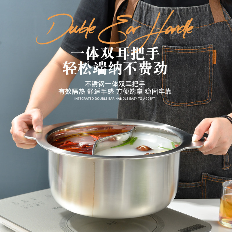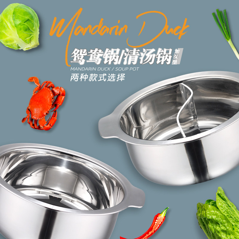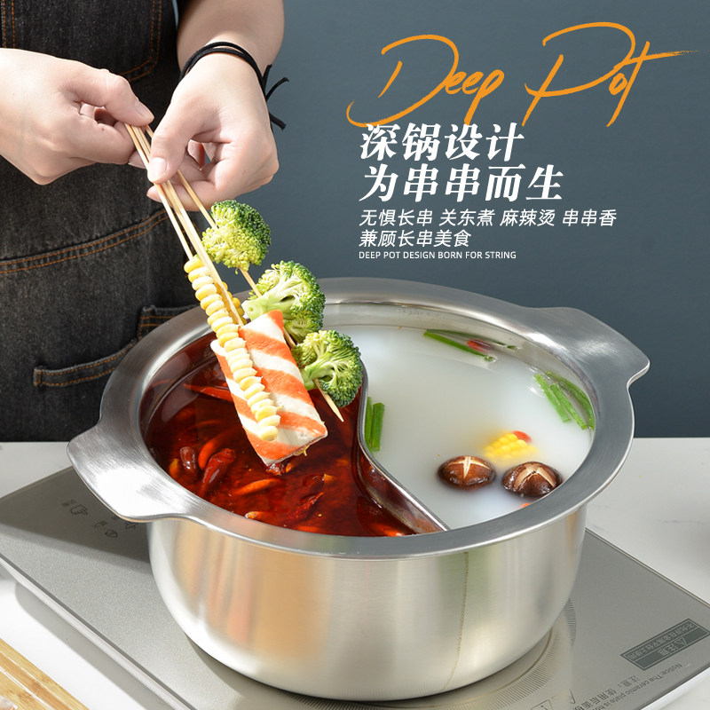 Stainless steel skewer pot Commercial deepened Mandarin duck soup pot Hot pot Induction cooker special belly skewer fragrant household shabu-shabu